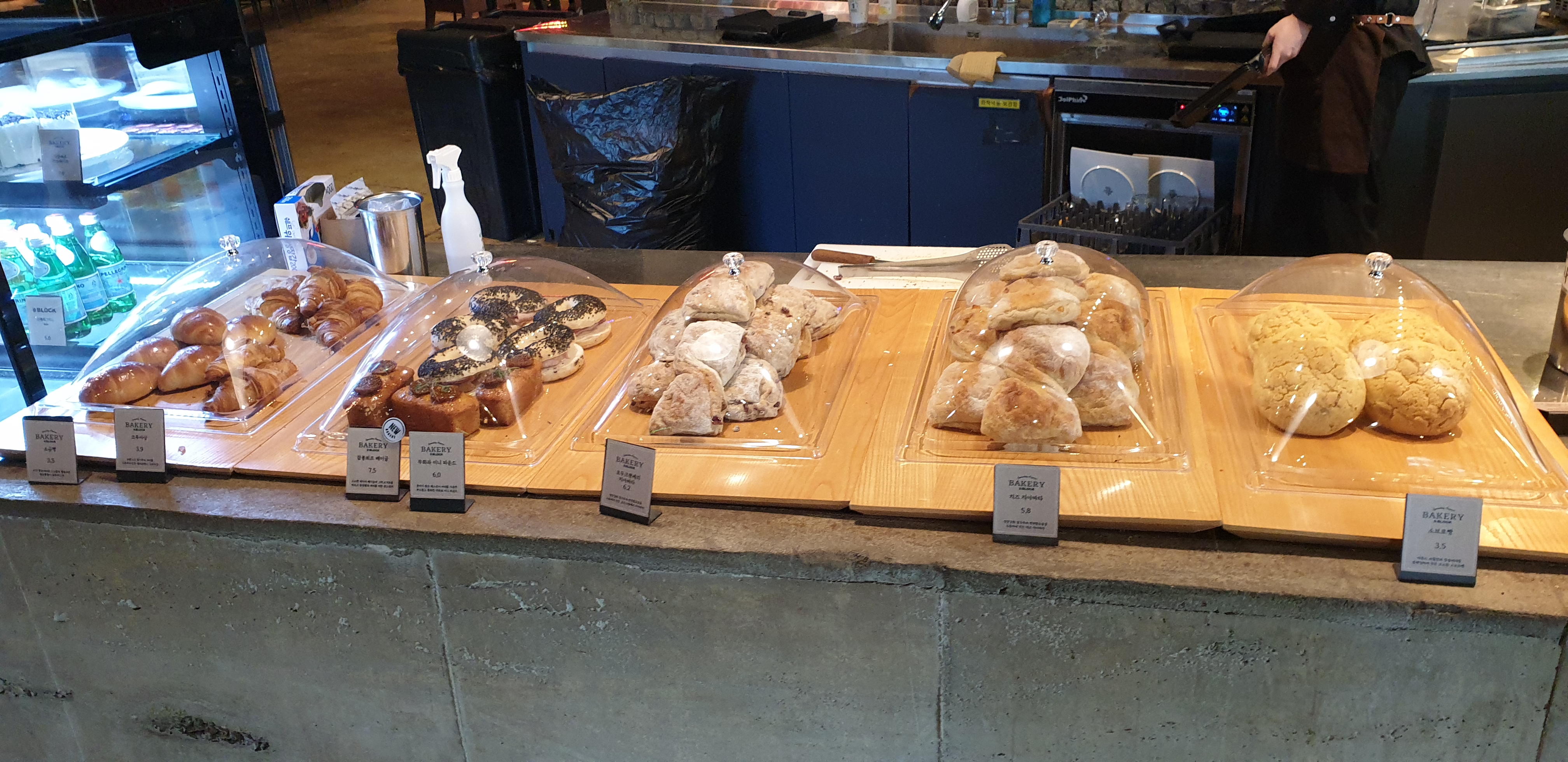 베이커리 종류도 몇 가지 있습니다. 늦은 시간에 가면 베이커리는 품절일 때가 많습니다.