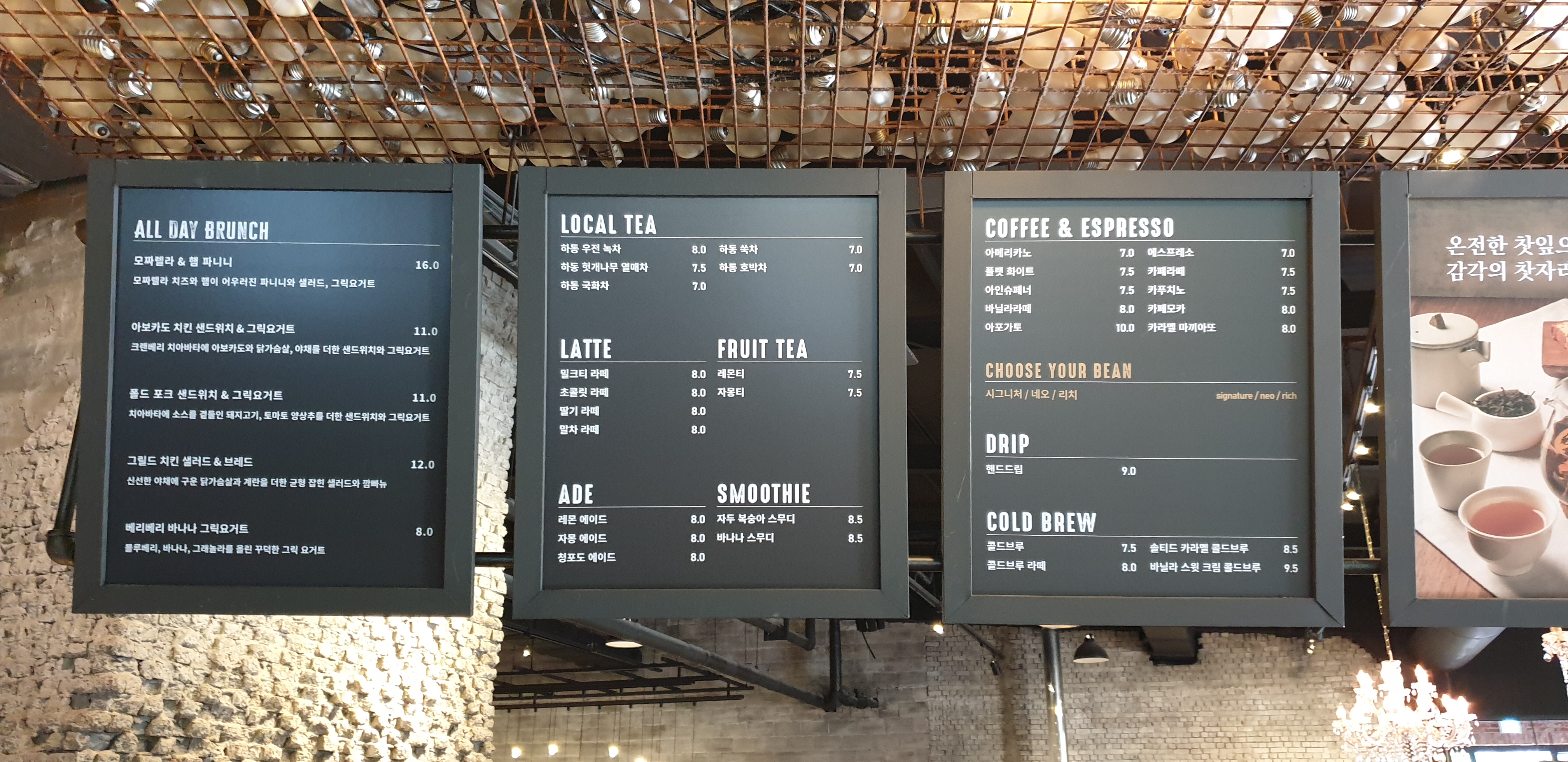 음료는 비교적 비싼 편입니다. 하지만 하동 차를 시그니쳐도 다양하게 구비하고 있어서 커피를 못 드시는 분이 방문하기에도 좋습니다.
