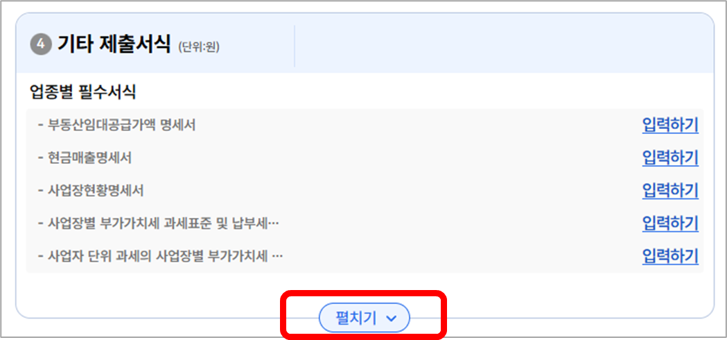 ① 화면 아래쪽 [기타 제출서식] 메뉴를 펼칩니다.