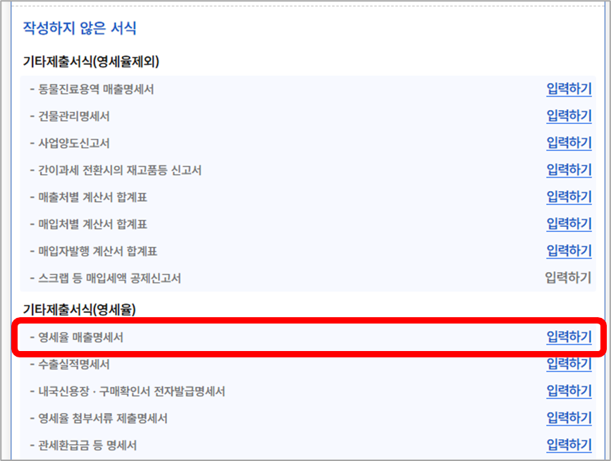 ② [영세율 매출명세서]의 [입력하기]를 클릭합니다.