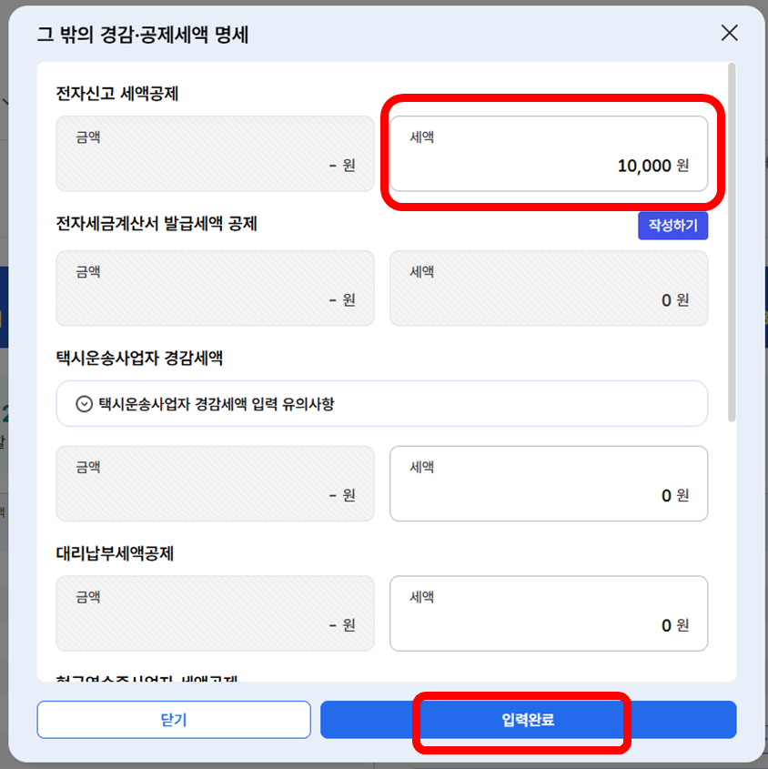③ 입력 후 [입력완료]를 누르면 매출세액란에 금액이 들어간 게 보일 거예요.