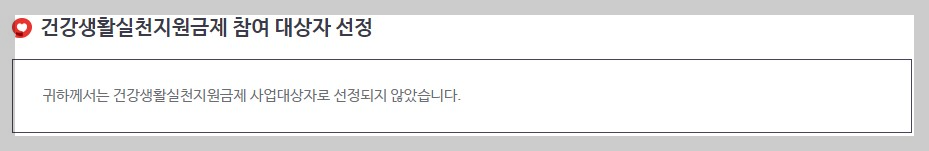 참여 대상자가 아니라면 아래와 같은 선정되지 않았다는 안내 문구를 확인하실 수 있습니다.