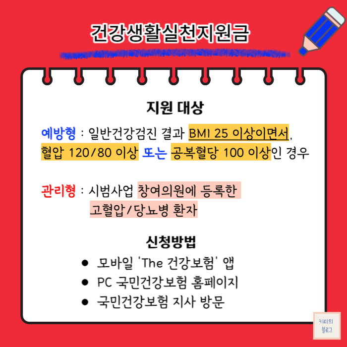 이번 글에서는 건간생활실천지원금의 지원대상과 신청방법을 정리해 보도록 하겠습니다.