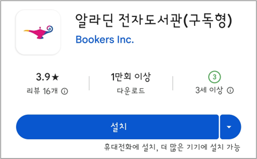 알라딘 전자도서관 앱은 두 가지가 있는데 [구독형]을 설치하셔야 합니다.