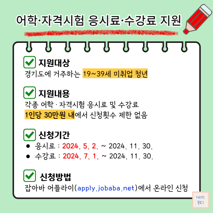 오늘은 경기도에서 시행하는 어학·자격시험 응시료 및 수강료 지원 사업에 대해서 소개해 드리려고 합니다.