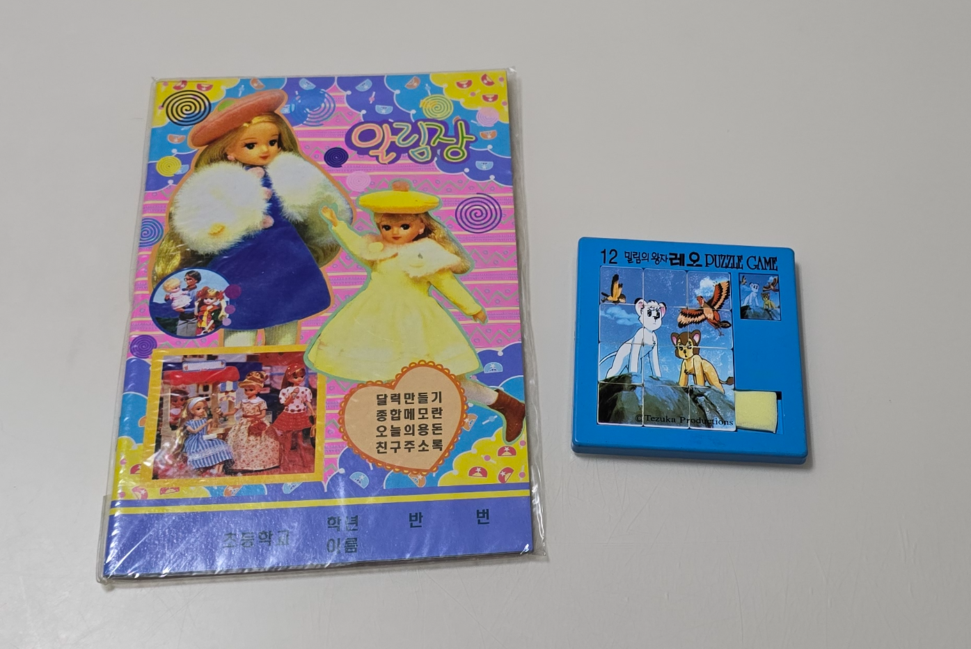 옛날 알림장과 퍼즐입니다. 밀림의 왕자 레오는 좋아했던 만화인데다, 저 퍼즐이 반가워서 하나 구입했습니다. 퍼즐과 알림장은 꽤 많이 남아 있습니다.