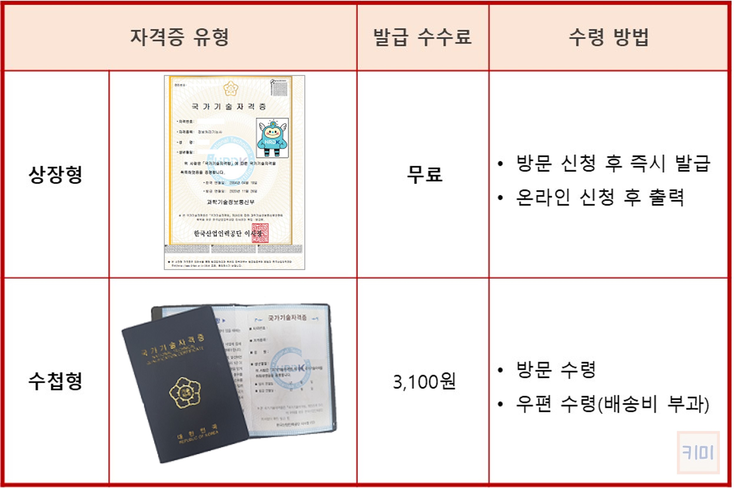 자격증은 상장형과 수첩형 두 가지 형태가 있으니 확인하시고 원하는 유형으로 재발급받으시기 바랍니다.