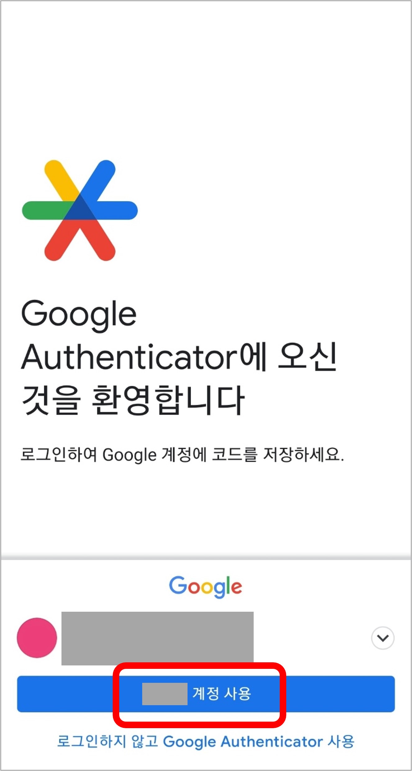 2. 구글 OTP 앱에서 구글 계정으로 로그인합니다.