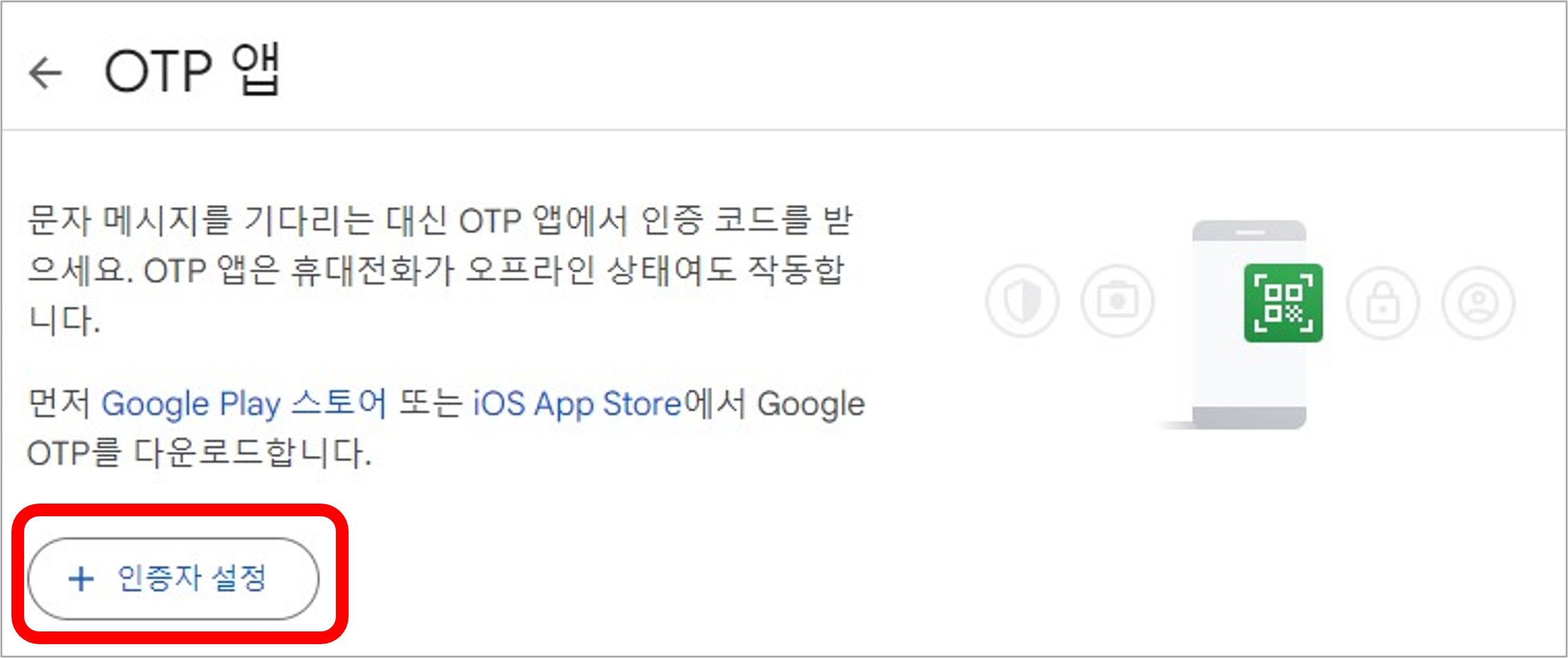 구글 OTP란 구글 계정의 2단계 인증에 사용되는 인증 코드 생성기입니다.