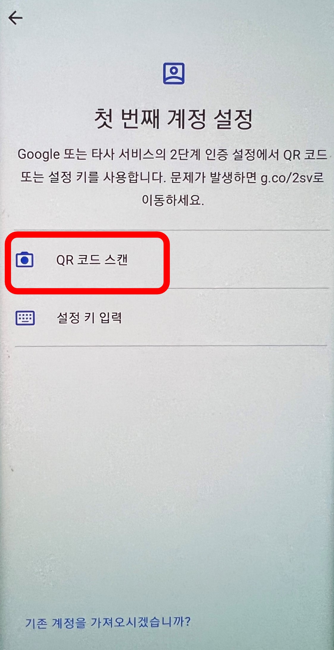 2. 구글 OTP 앱에서 구글 계정으로 로그인합니다.
