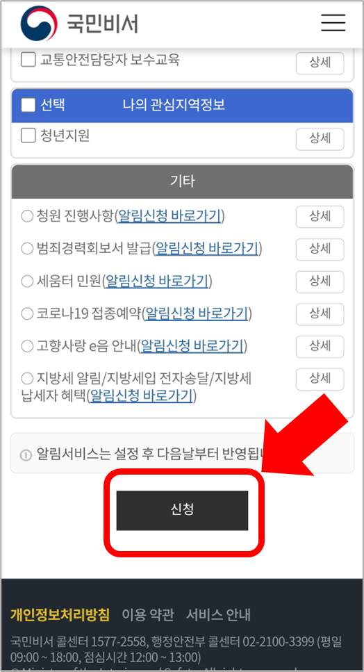 저는 주민등록정보 보호를 위해 주민등록 항목에 있는 세 가지 알림 서비스를 모두 신청했습니다.