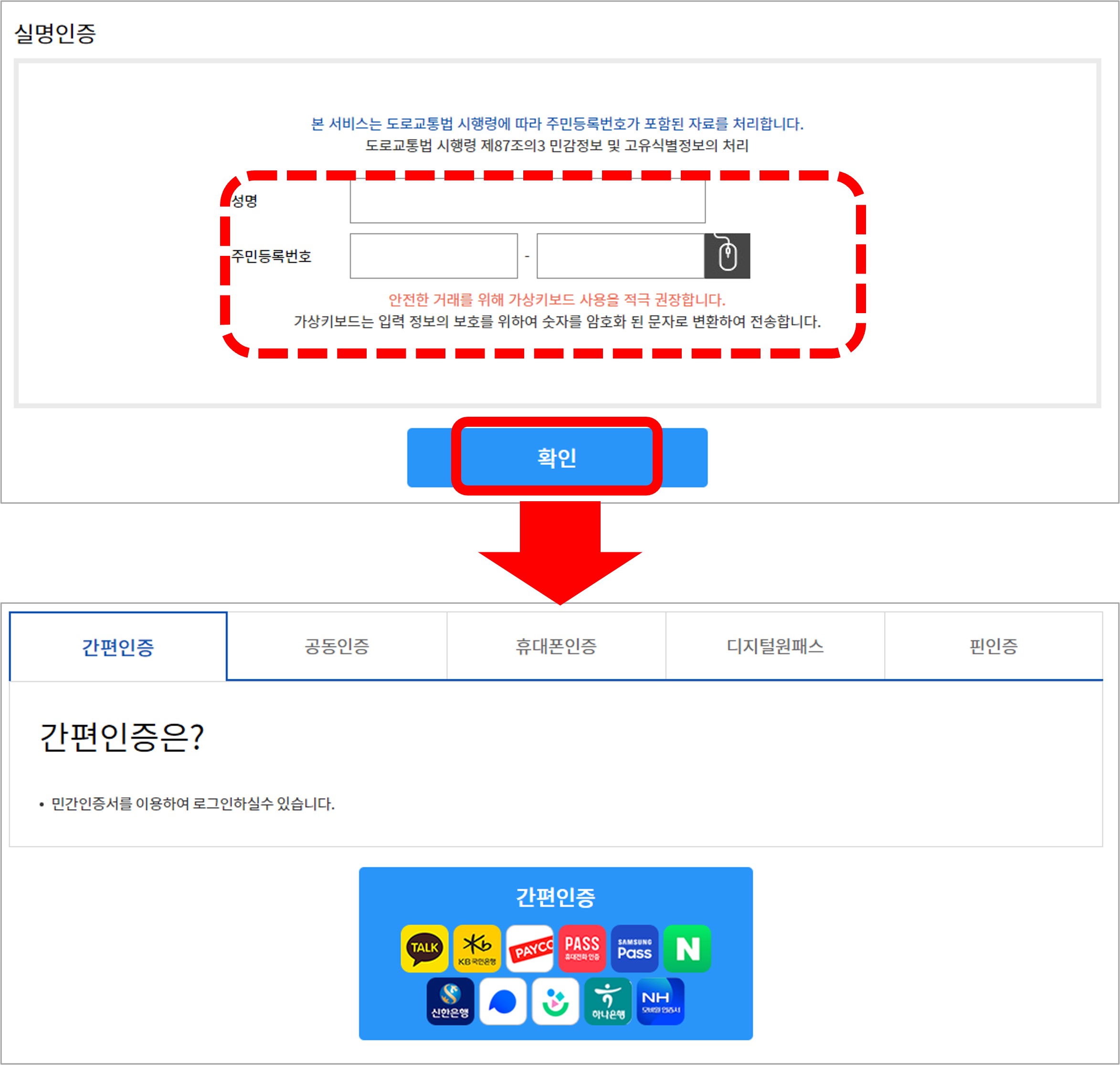 별도의 로그인 없이 아래와 같이 실명인증 후 신청이 가능합니다.