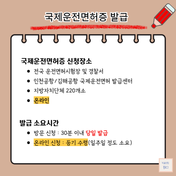 국제운전면허증은 5가지 장소에서 신청 및 발급이 가능합니다.