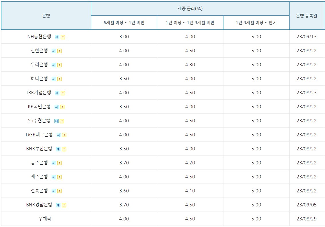 은행별 제공 금리는 다음과 같습니다. 하지만 금리가 계속 변하기 때문에 해당은행에서 정확한 금리를 확인하시기 바랍니다.