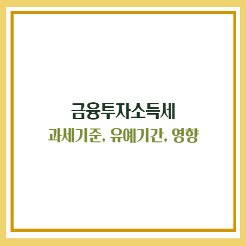 금융투자소득세는 이자, 배당소득을 제외한 금융소득에 부과되는 세금으로, 당초 2023년 1월 1일 시행 예정이었으나 2년 연기되어 2025년 1월 1일부터 시행될 예정입니다.