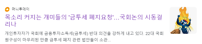 금융투자소득세 시행은 저 같은 소액투자자는 직접적인 영향은 없겠지만, 시장 변동성, 증시 하락 등의 불안 요인을 고려해야 합니다.