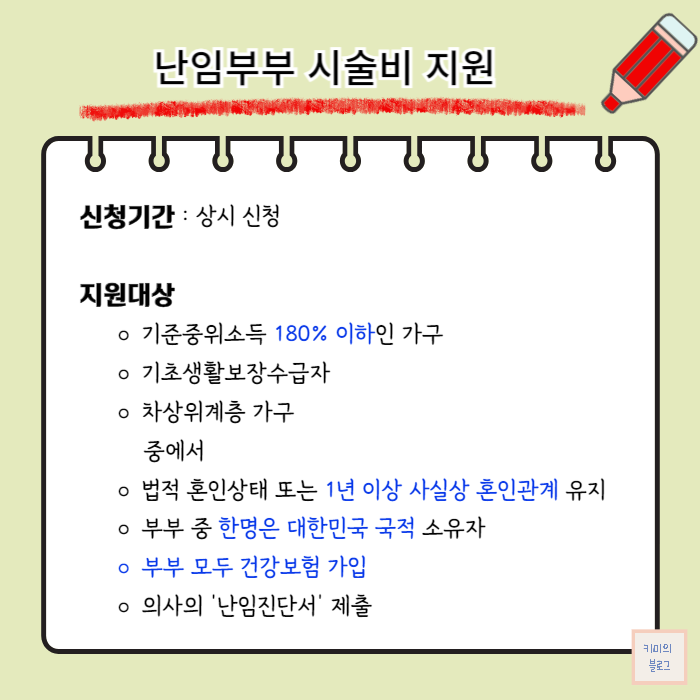 오늘은 난임부부의 경제적 부담을 경감시켜주는 난임부부 시술비 지원에 대해서 알아보았습니다.