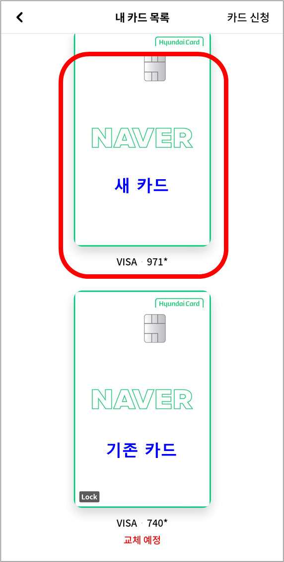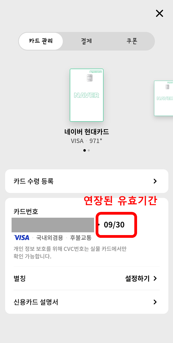 기존 네이버 현대카드 유효기간 연장 방법