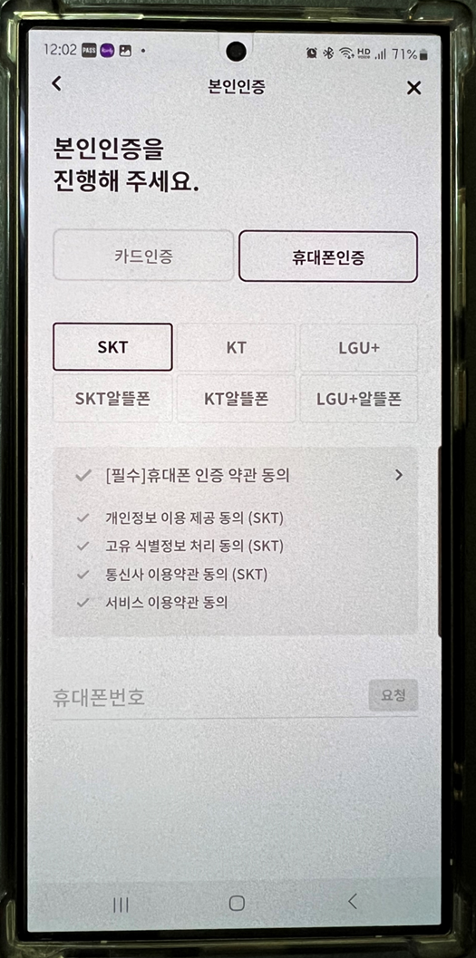 이제 카드인증 또는 휴대폰인증으로 본인인증을 하고 나면 재발급 신청이 완료됩니다.