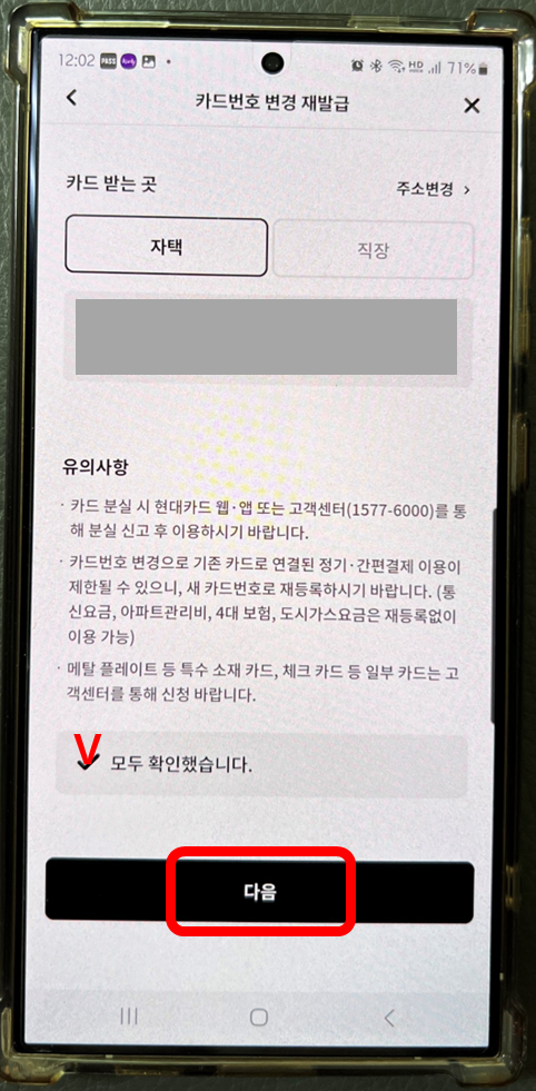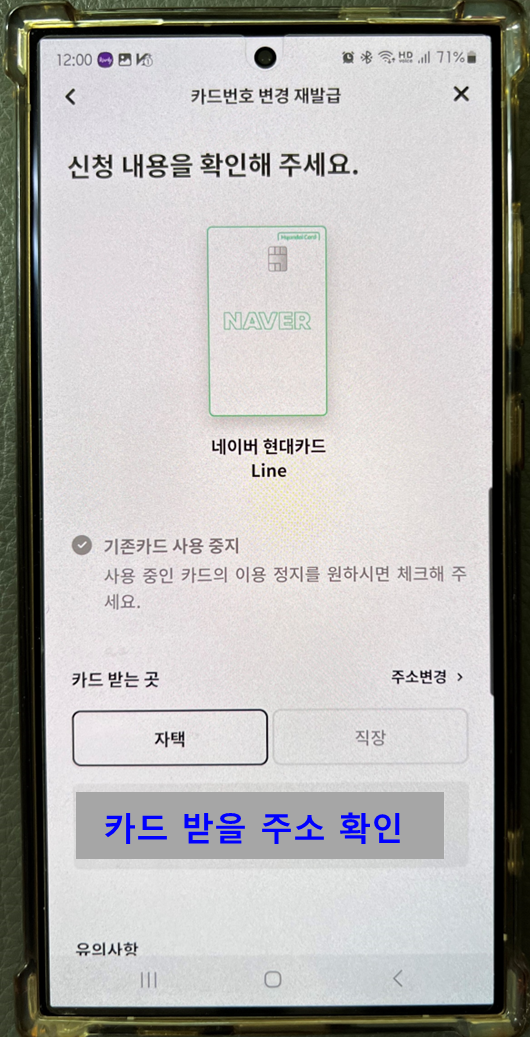 카드 받을 주소를 확인 또는 변경한 뒤