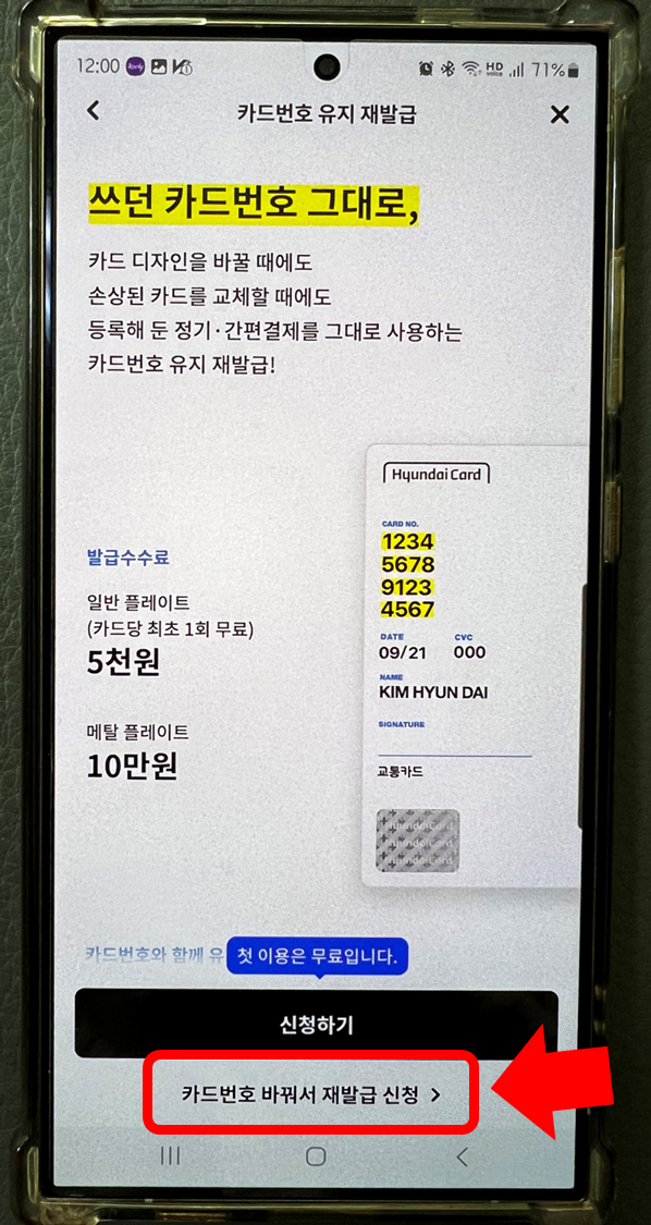 ★[카드번호 바꿔서 재발급 신청]을 선택합니다. ★