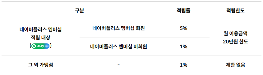 네이버플러스 멤버십 회원이 네이버플러스 멤버십 적립 대상에서 결제하면 네이버페이 포인트가 최대 5%씩 적립됩니다.