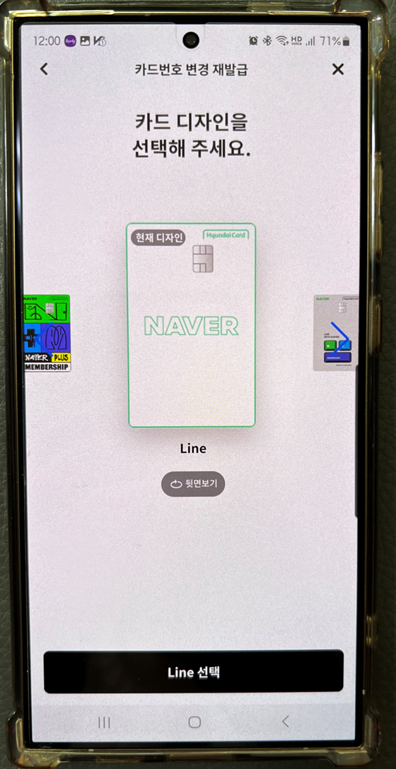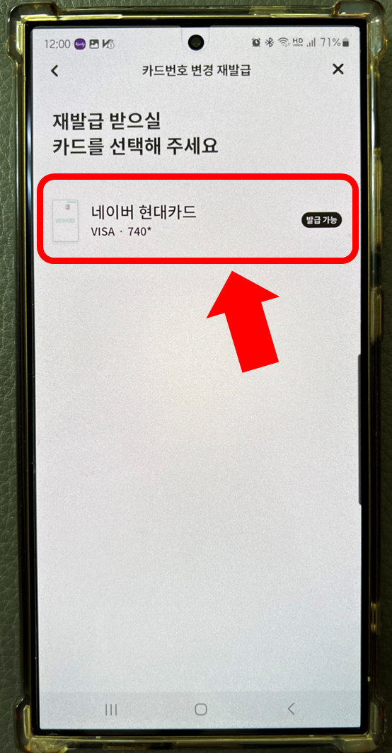 그리고 재발급받을 카드로 기존의 네이버 현대카드를 선택하면 됩니다.