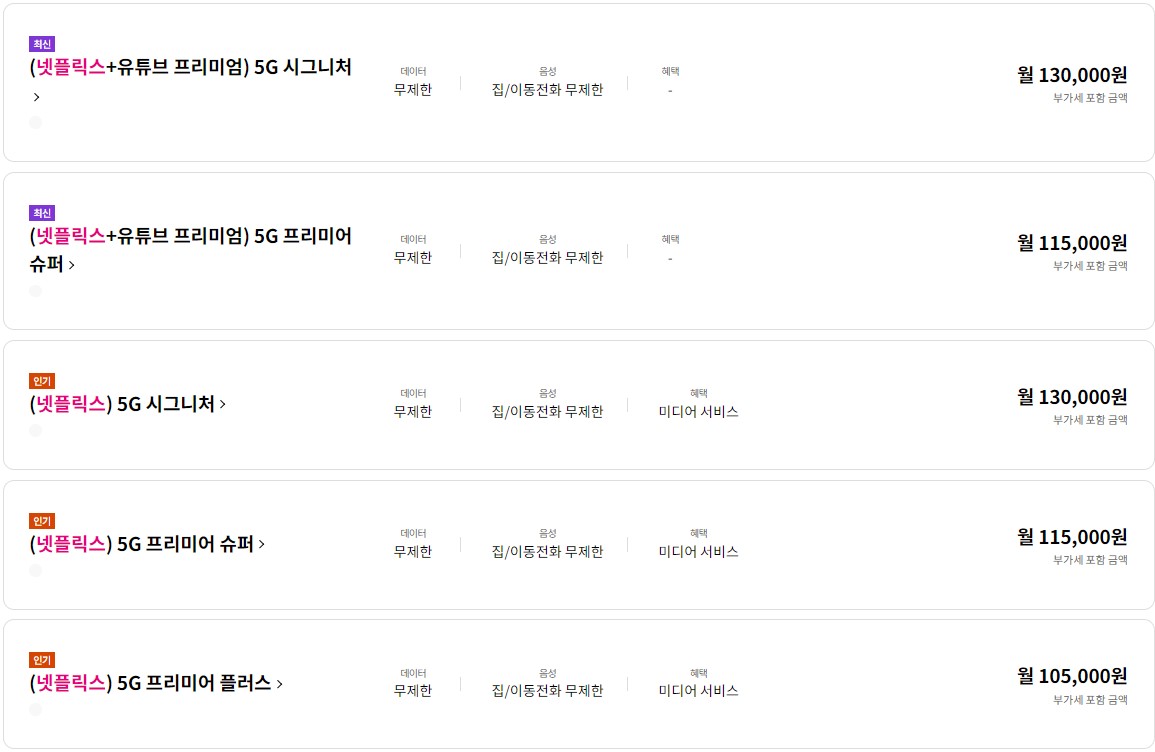 LG U+에서는 5G 요금제와 넷플릭스를 결합한 형태를 제공하고 있습니다. 옵션에 따라 가격이 다르기 때문에 자세한 내용은 LG U+ 홈페이지에서 확인해 보시기 바랍니다.
