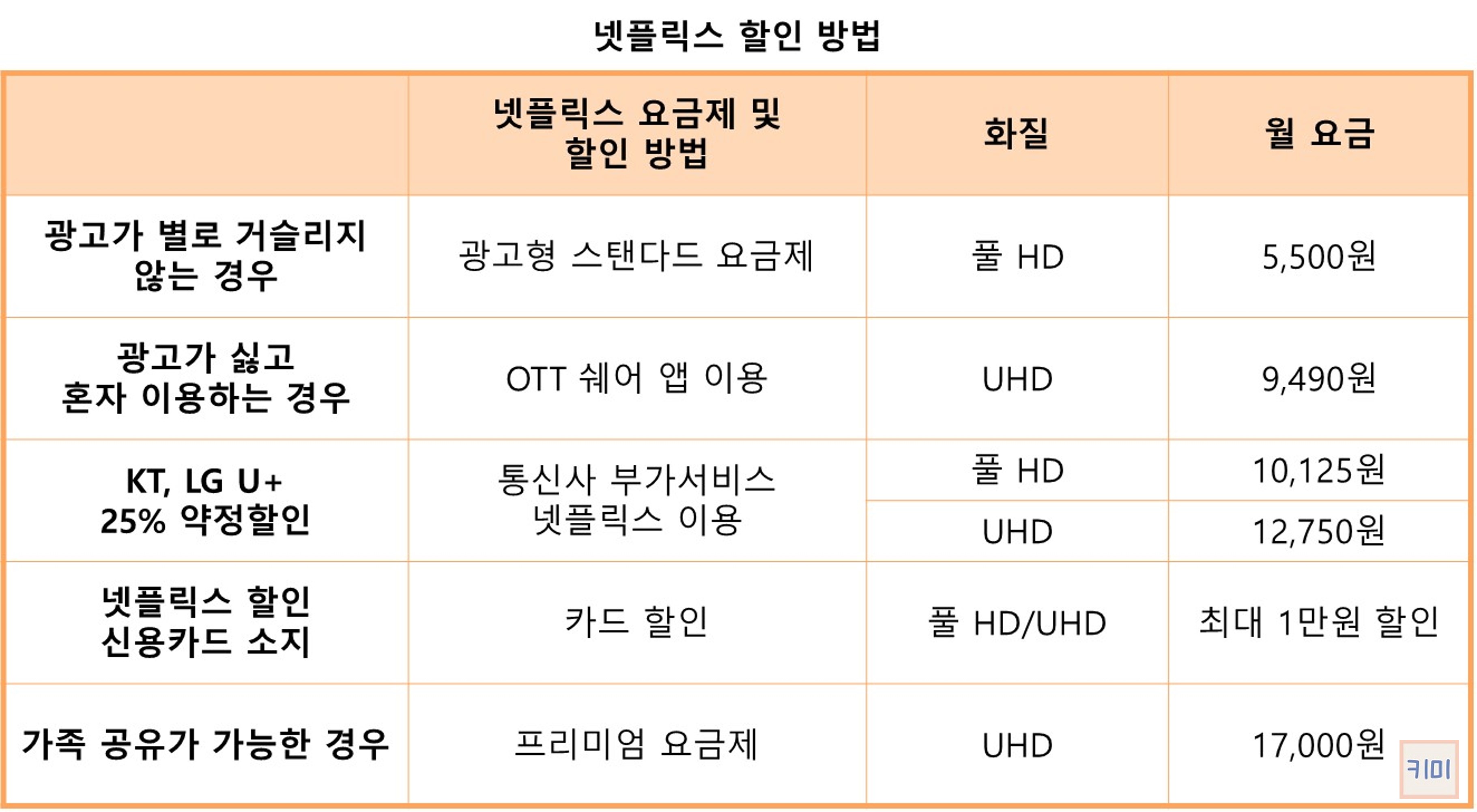 위의 요금제보다 저렴한 가격으로 넷플릭스를 이용하는 방법은 크게 세 가지가 있습니다.