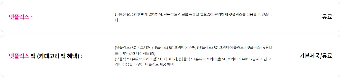 LG U+에서는 5G 요금제와 넷플릭스를 결합한 형태를 제공하고 있습니다. 옵션에 따라 가격이 다르기 때문에 자세한 내용은 LG U+ 홈페이지에서 확인해 보시기 바랍니다.