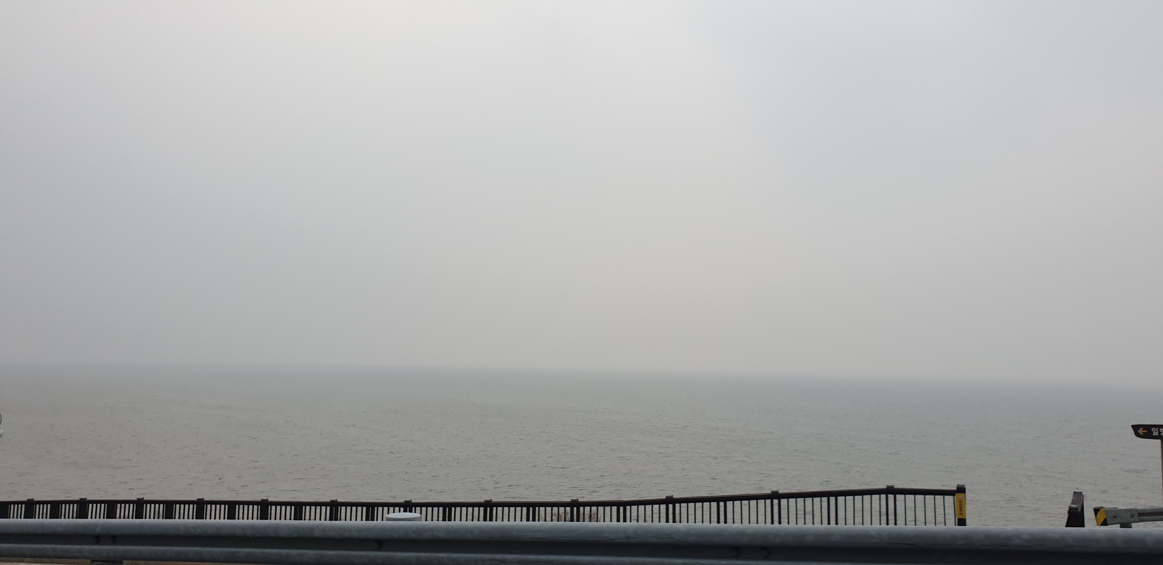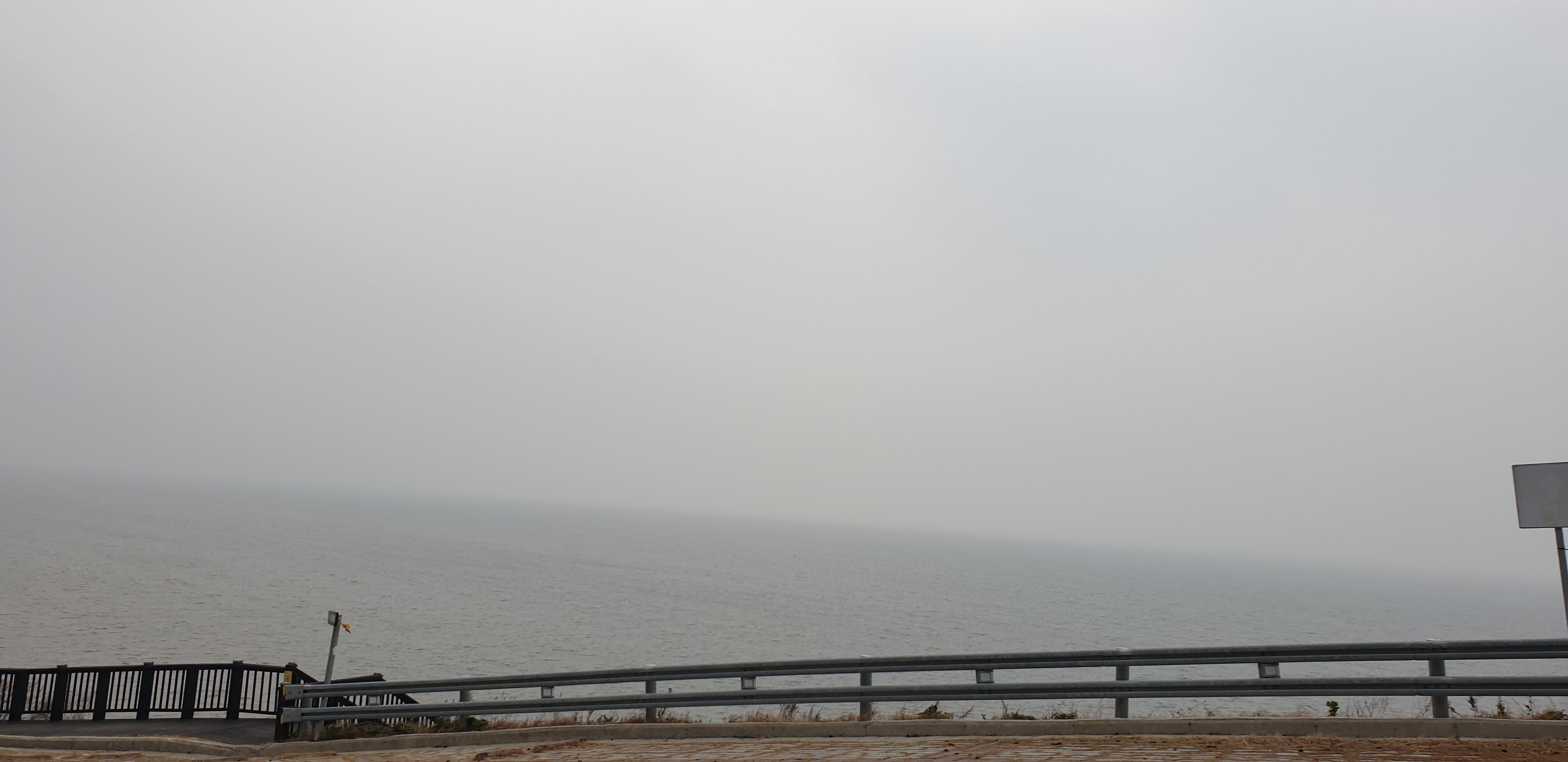 도로가 바다와 아주 가깝기 때문에 탁 트인 서해 경치가 아름답습니다. 저는 하필 날씨가 매우 흐릴 때 가서 풍경이 참 아쉬웠는데요. 그럼에도 넓게 보이는 풍경이 맑은 날을 기대하게 했습니다.