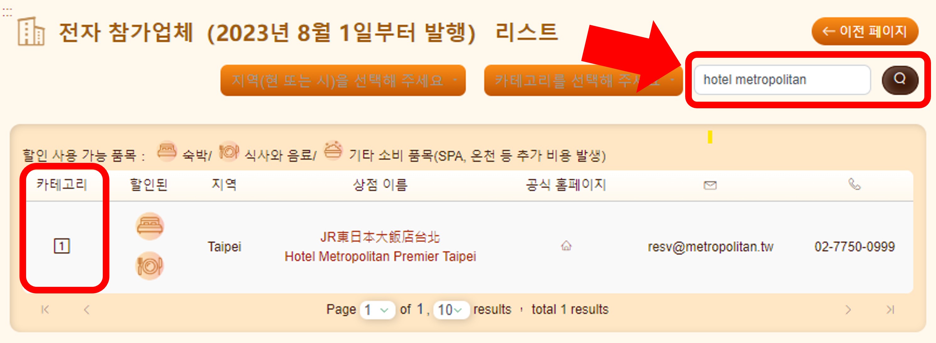 저는 호텔 메트로폴리탄 프리미어 타이베이 호텔에 숙박했습니다. 제 ①종에 속하는 호텔로, 호텔스닷컴으로 예약했지만 결제 유형이 현장 결제였기 때문에 숙박지원금을 사용할 수 있었습니다.