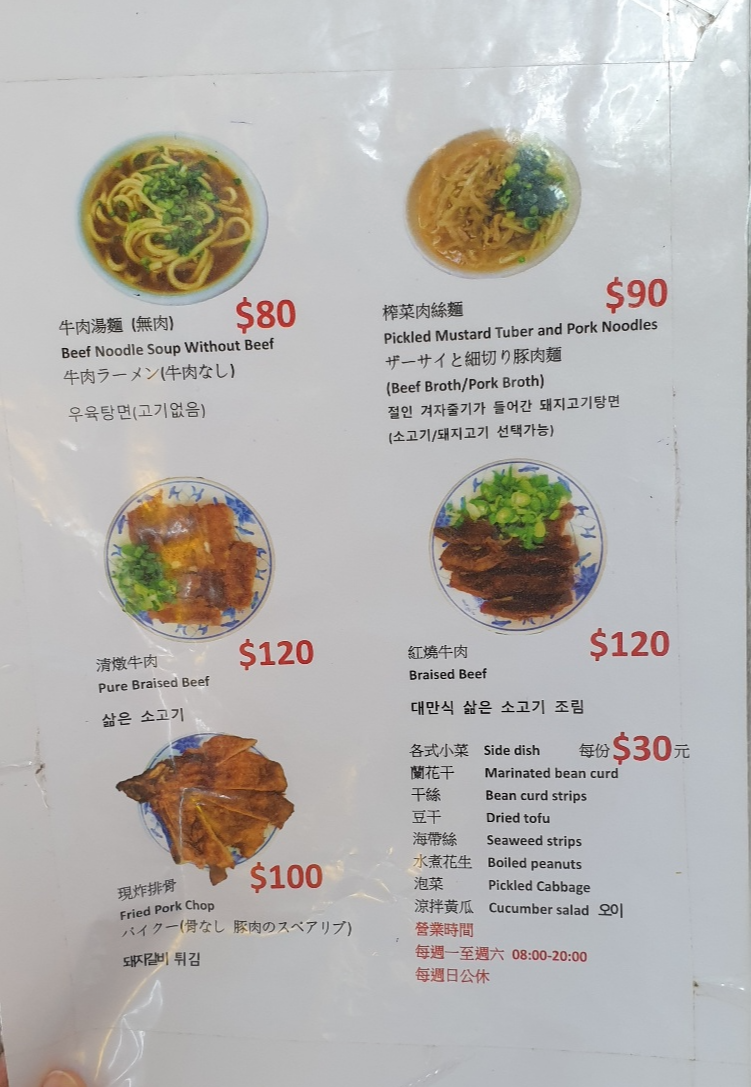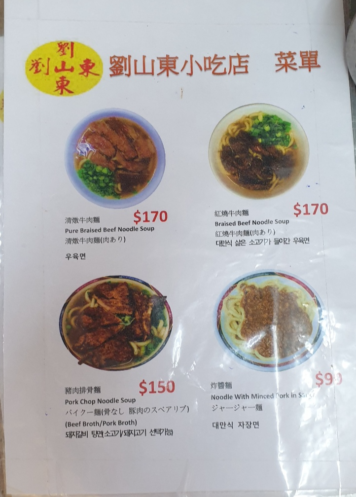 유산동 우육면은 메뉴가 다양하지는 않고, 우육면 두 가지와 돼지고리 면 요리, 반찬 등이 있습니다.