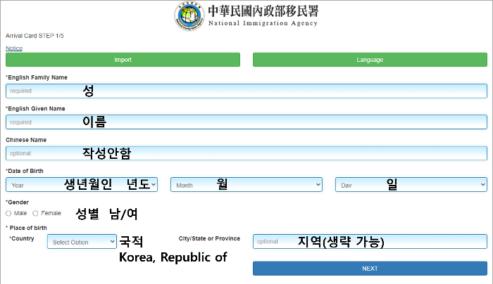 대만 입국신고서 작성 방법