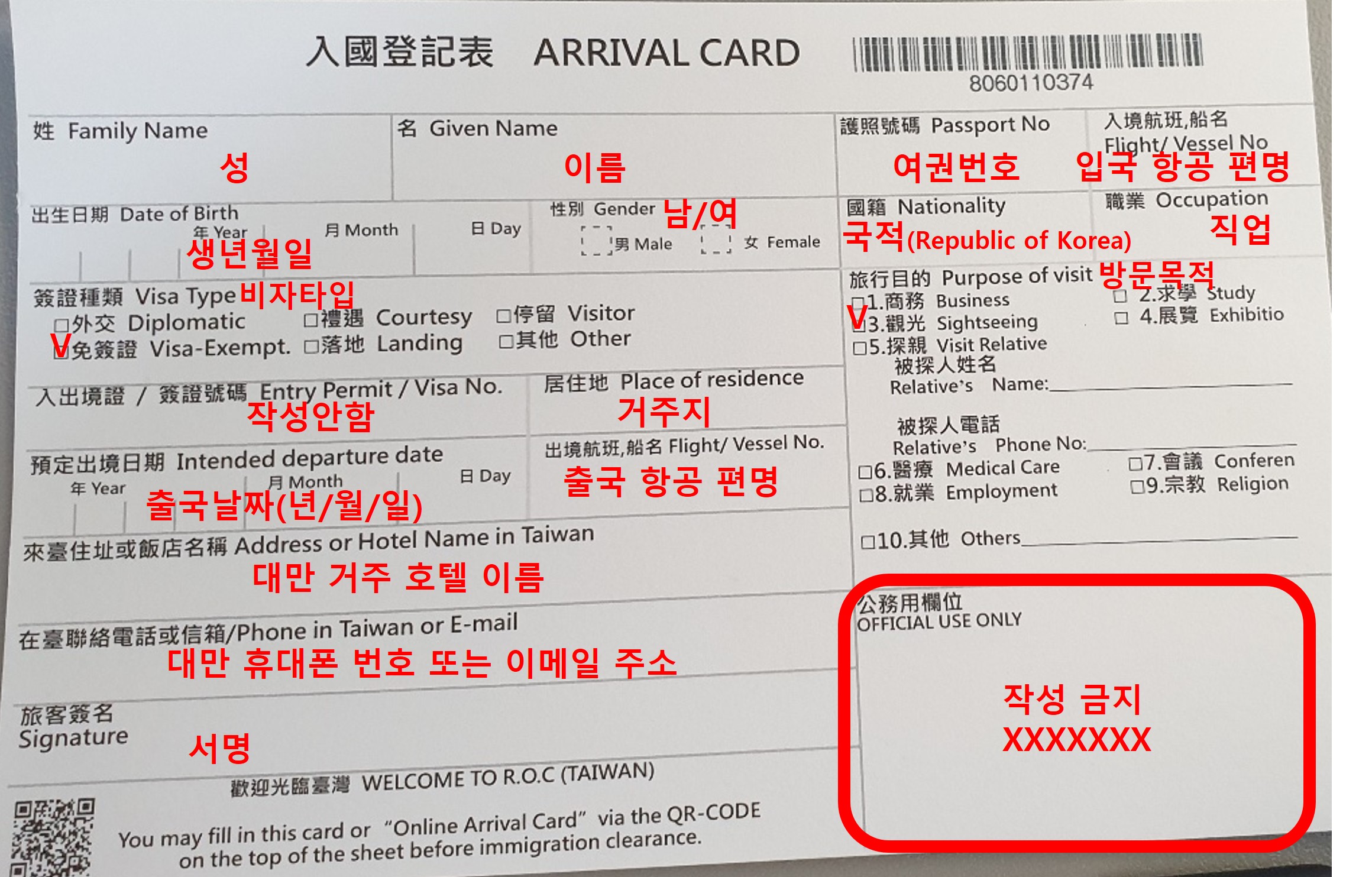 이 글에서는 대만 입국신고서 작성방법을 정리해 보겠습니다.