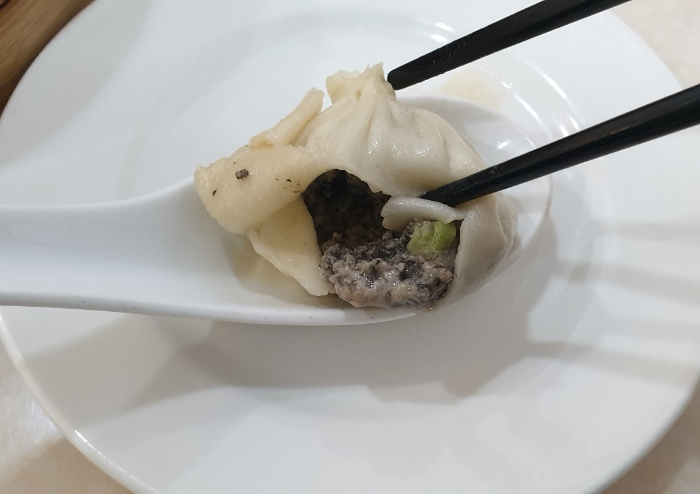 정말 감동적이었던 트러플 샤오롱바오입니다. 안을 보시면 검은색 송로버섯이 저렇게 듬뿍 들어있습니다.