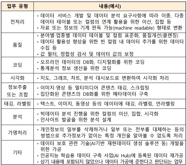 - (가공) 맞춤형 데이터 가공서비스를 지원받아 데이터 분석, AI개발