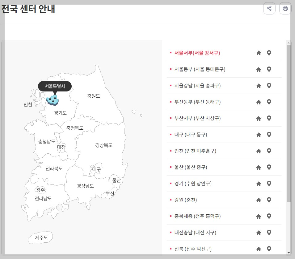 한국건강관리협회는 각 특별시, 광역시, 도 등에 센터가 있습니다. 아래 페이지를 방문하여 가까운 센터 위치를 확인한 후, 센터 홈페이지에서 독감주사 가격(비급여 진료비)을 확인하실 수 있습니다.