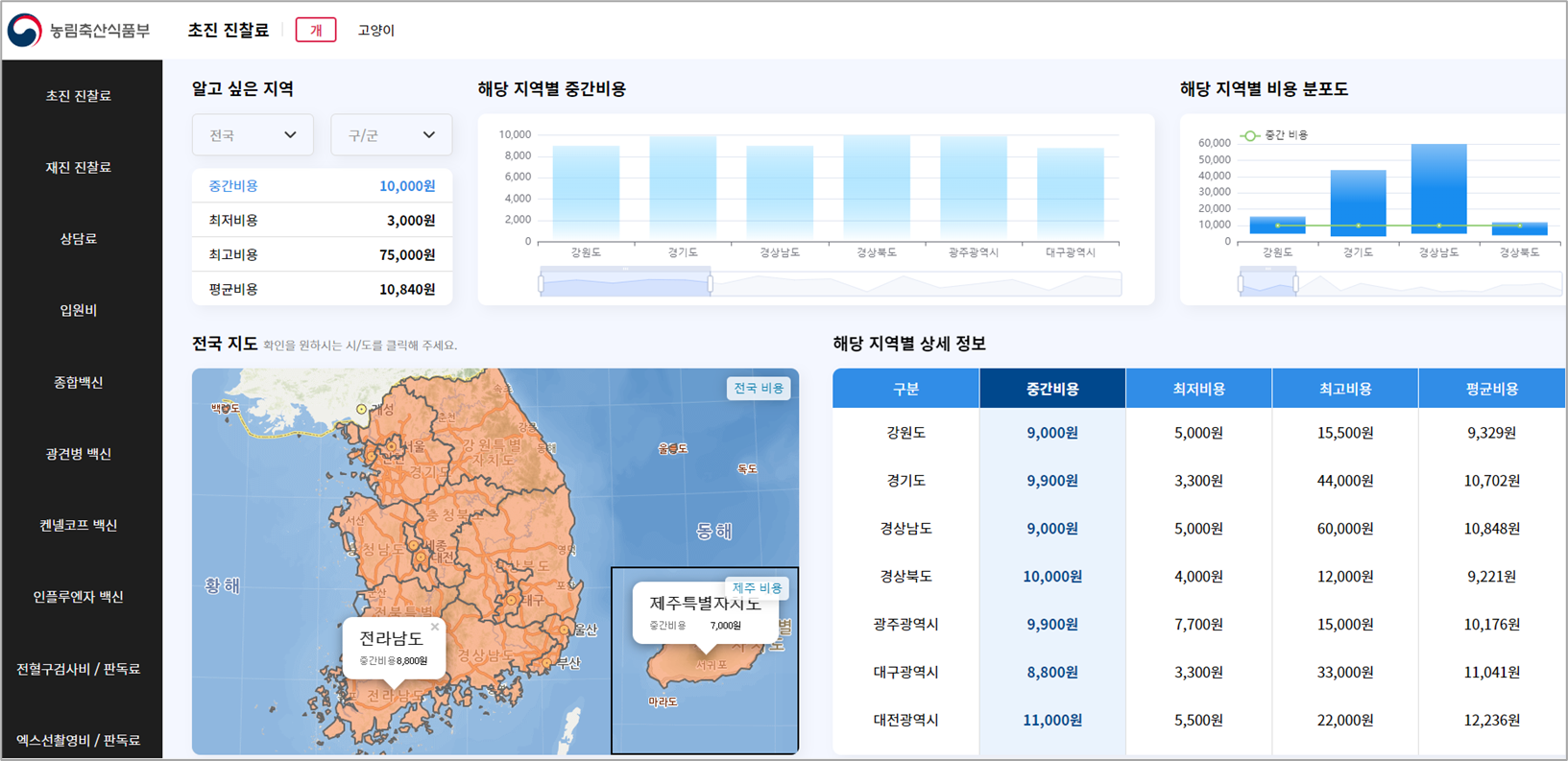 이번 글에서는 지역별 동물병원 진료비의 중간, 최고, 최저, 평균 비용을 확인하는 방법을 안내해 드리겠습니다.