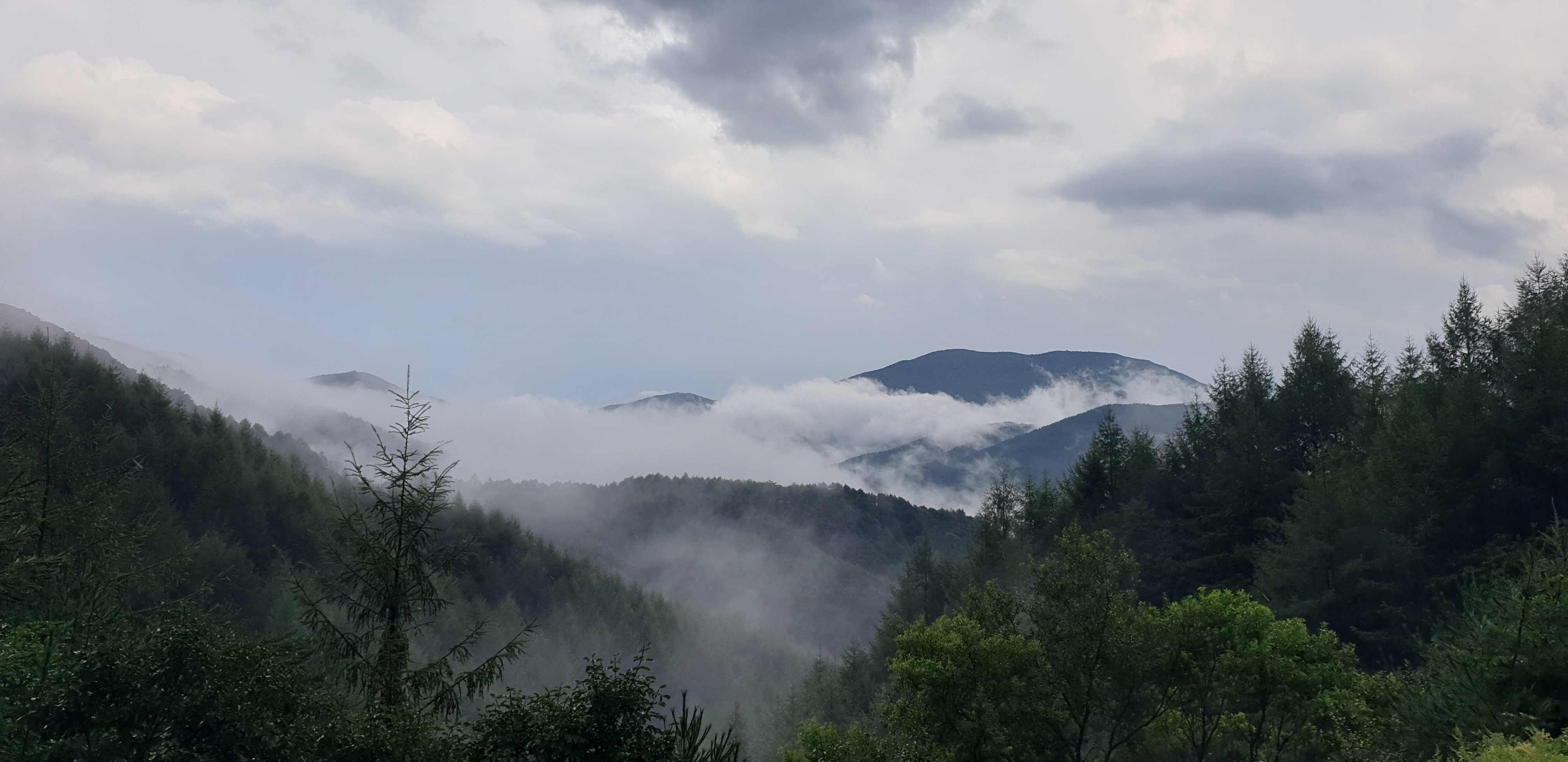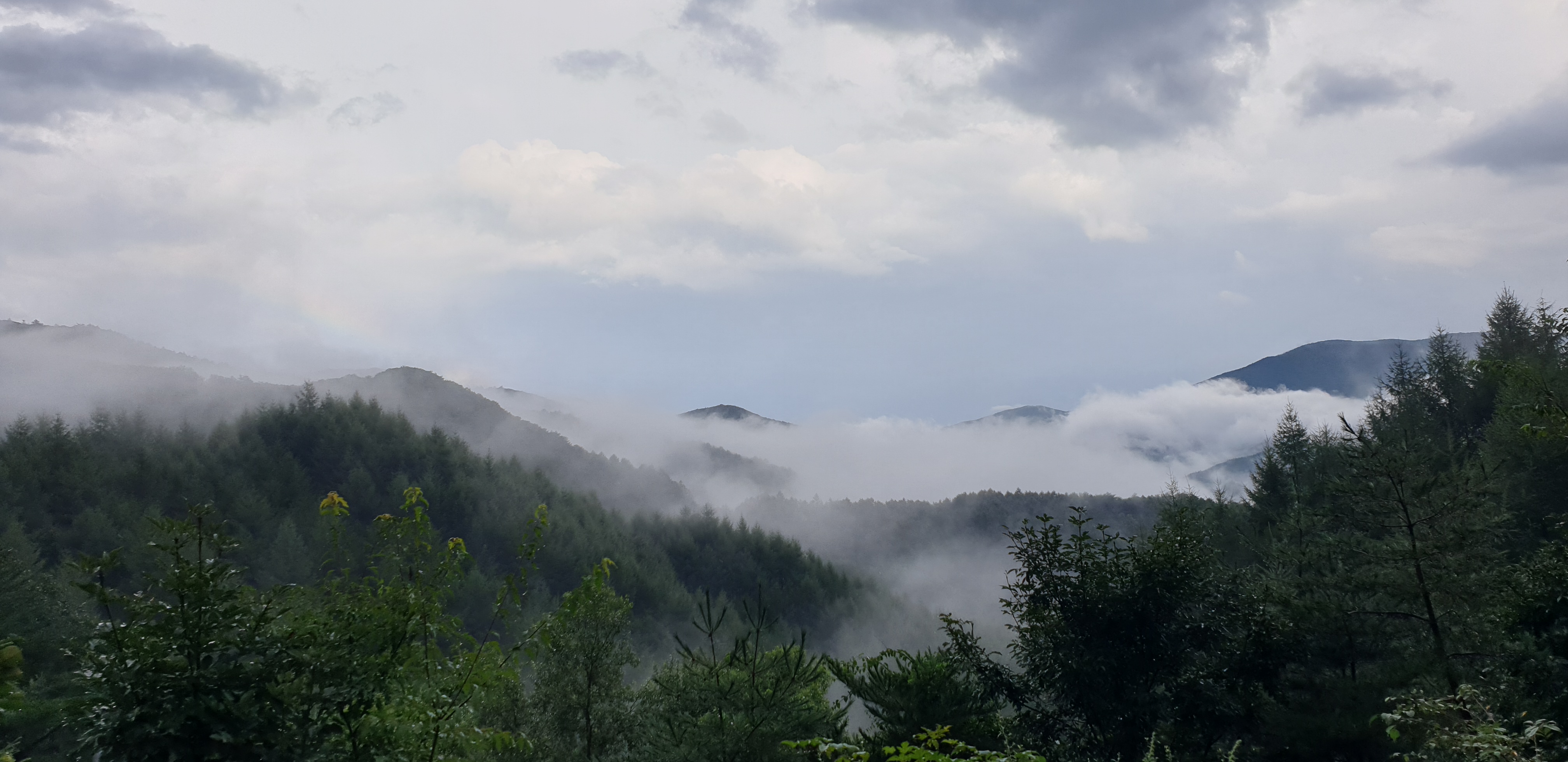 그리고 만항재의 해발고도가 높기 때문에 그 아래로 구름을 내려다볼 수 있습니다. 병풍처럼 겹겹이 펼쳐진 산맥 사이로 구름이 낀 모습은 실제 풍경이라기 보단 그림처럼 몽환적인 느낌을 줍니다.