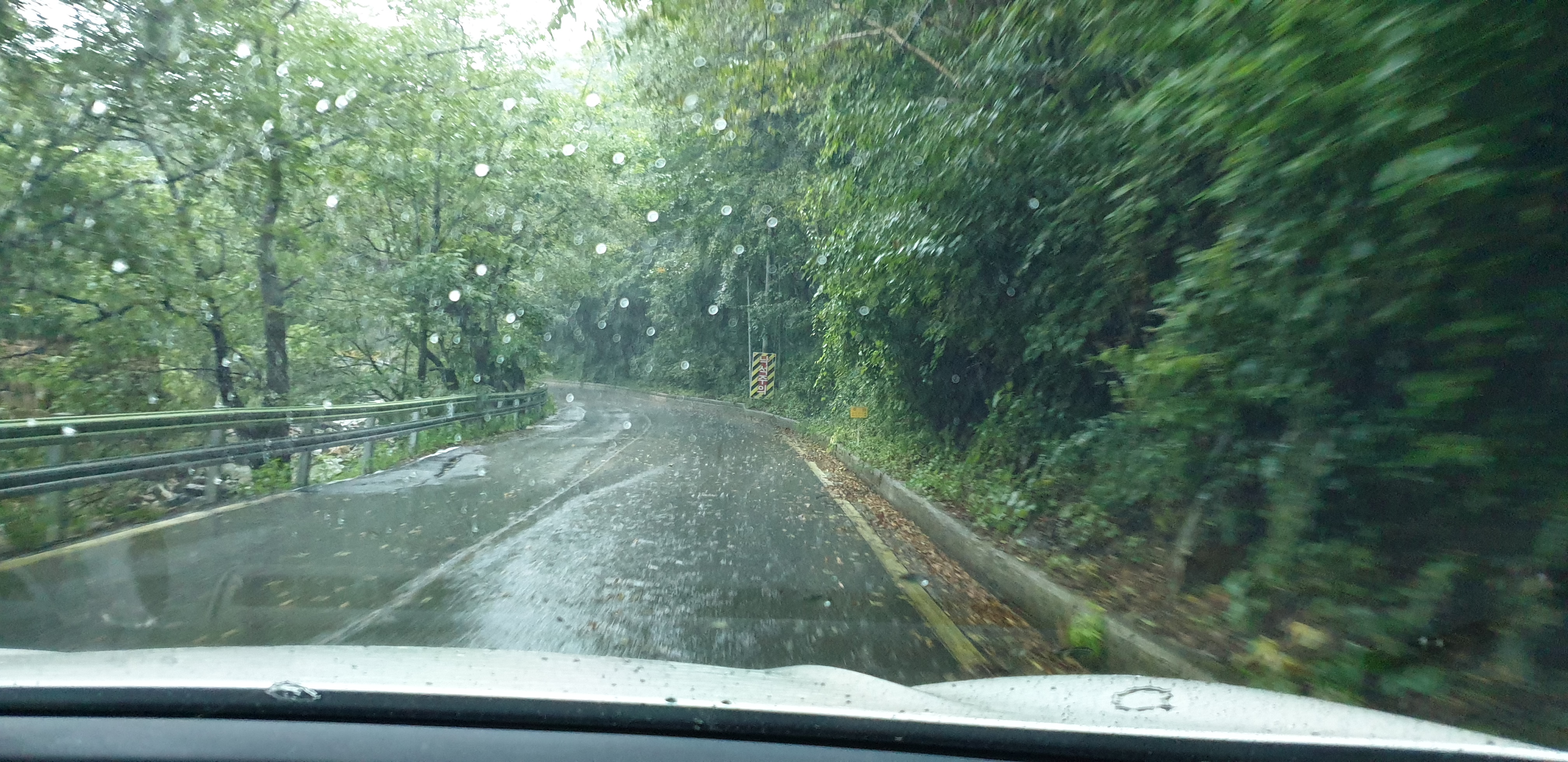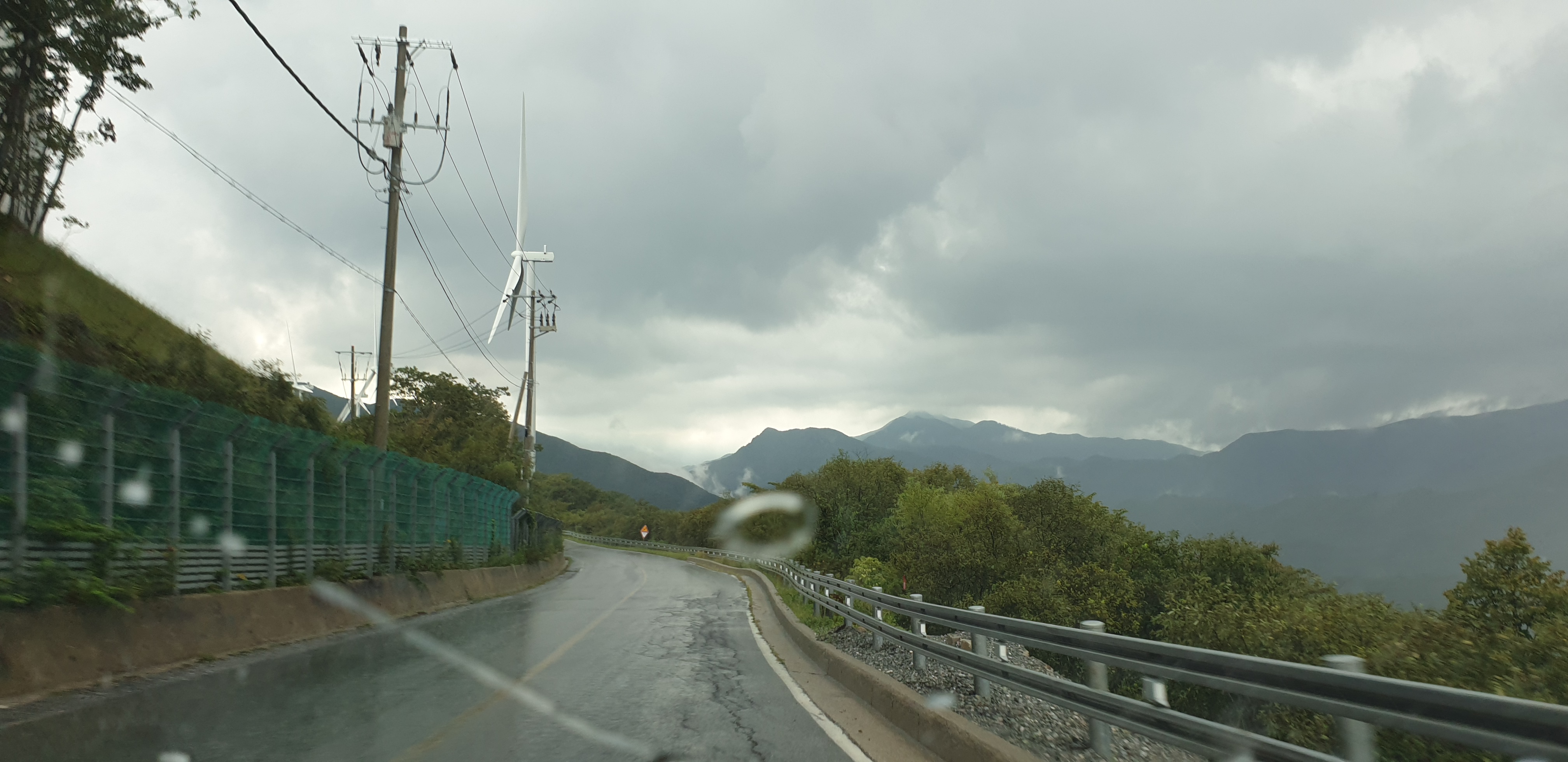 내려오는 길은 경사는 완만하지만 커브길이 좀 많아서 올라갈 때보다는 운전에 신경을 써야 했습니다. 하지만 경치는 내려오는 방향이 훨씬 훌륭하기 때문에 꼭 어평재 방향 도로도 가 보시기를 바랍니다.