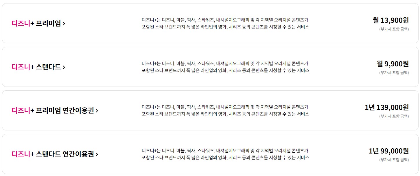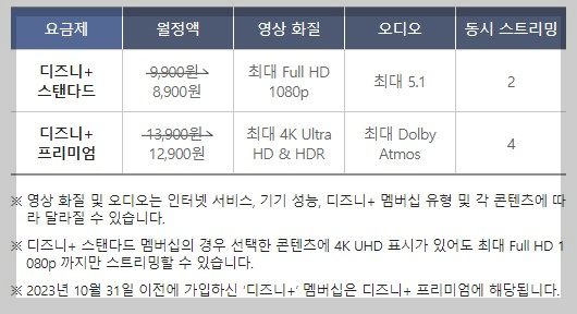 디즈니플러스는 최근 가격을 인상했습니다. 인상된 가격을 기준으로 살펴보겠습니다.