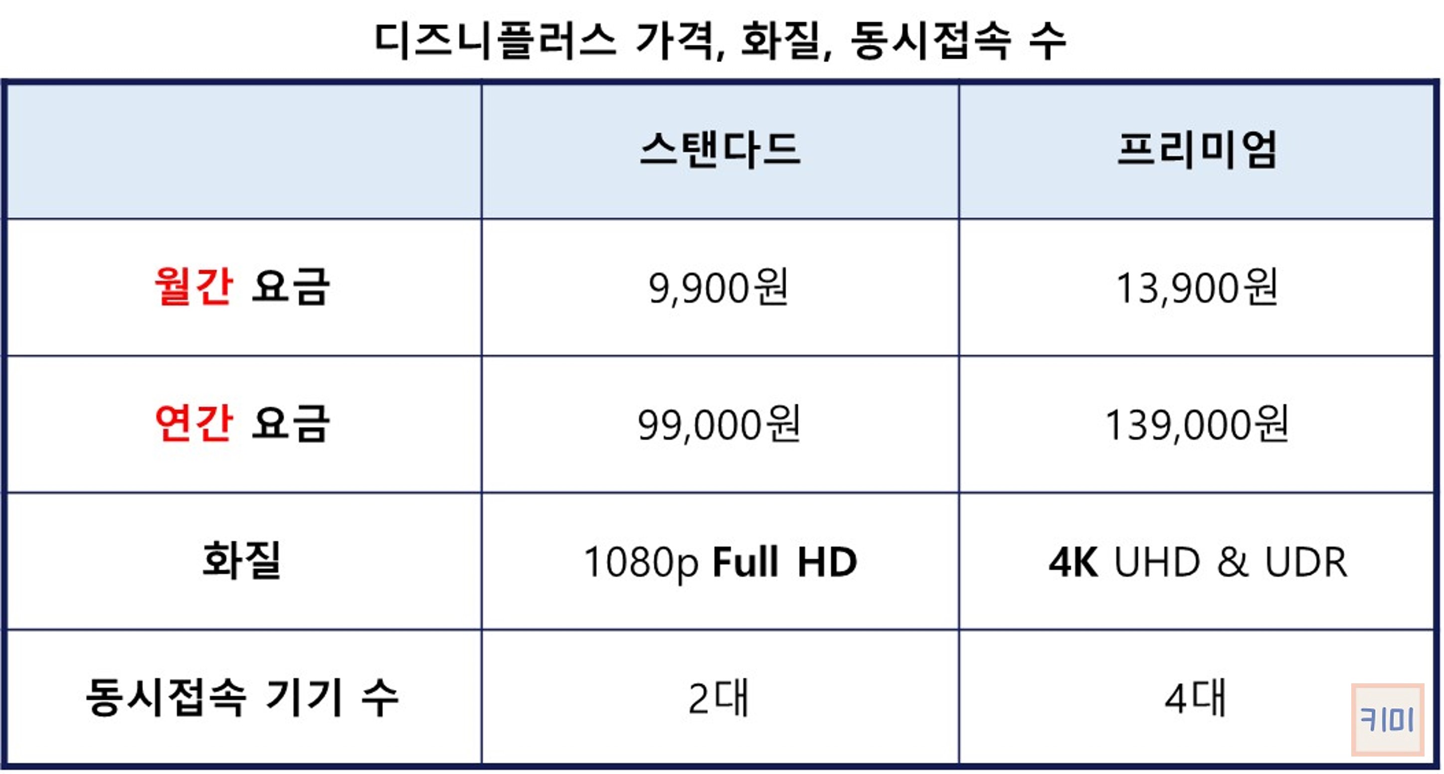 프리미엄은 4K 화질 시청이 가능하고 동시에 최대 4대의 기기에서 재생할 수 있습니다. 넷플릭스 프리미엄은 17,000원인데 비해 디즈니플러스는 3,100원 가량 더 저렴한 13,900원입니다.