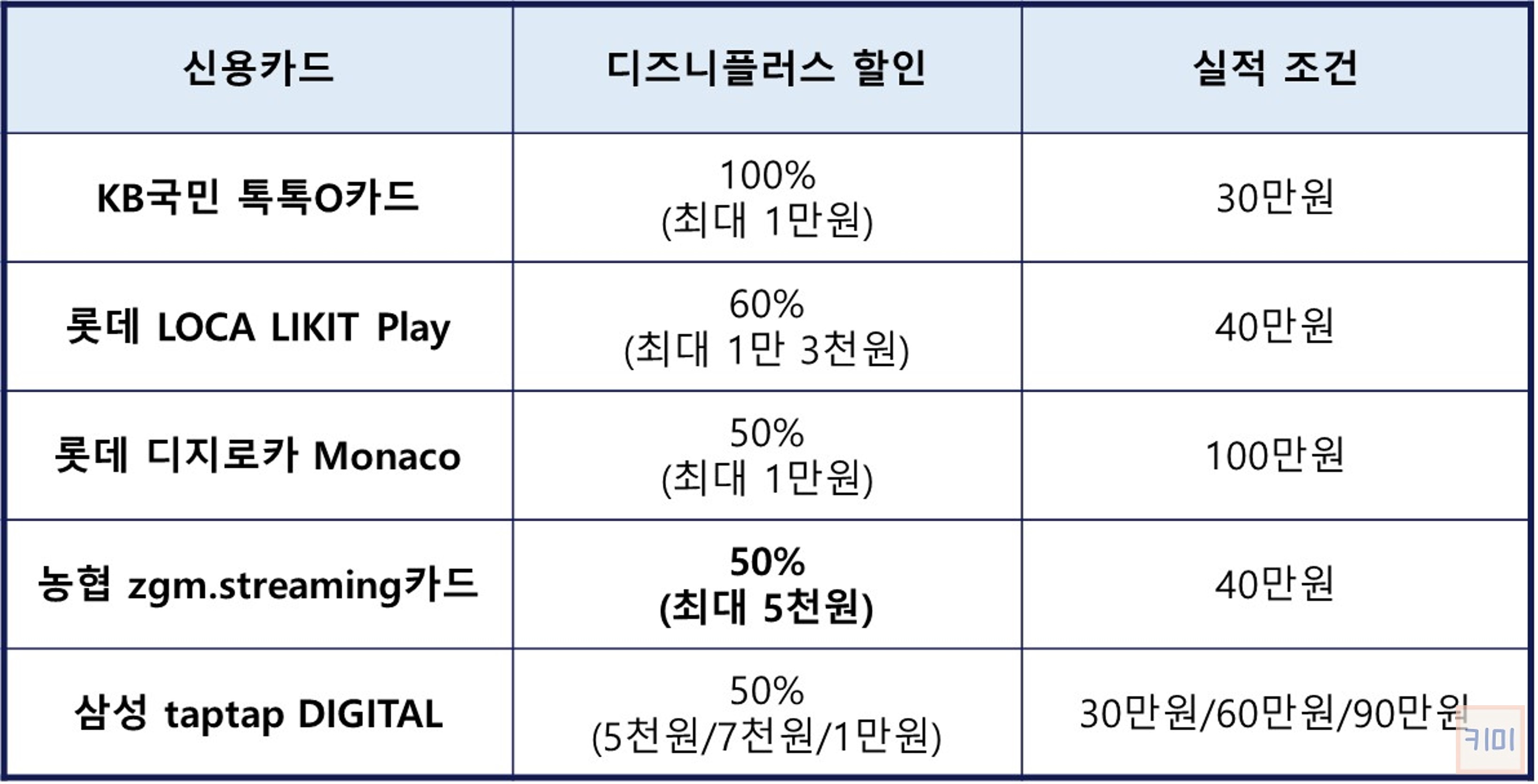 디즈니플러스 할인을 받을 수 있는 더 다양한 신용카드는 아래 배너를 클릭해서 확인해 보시기 바랍니다.