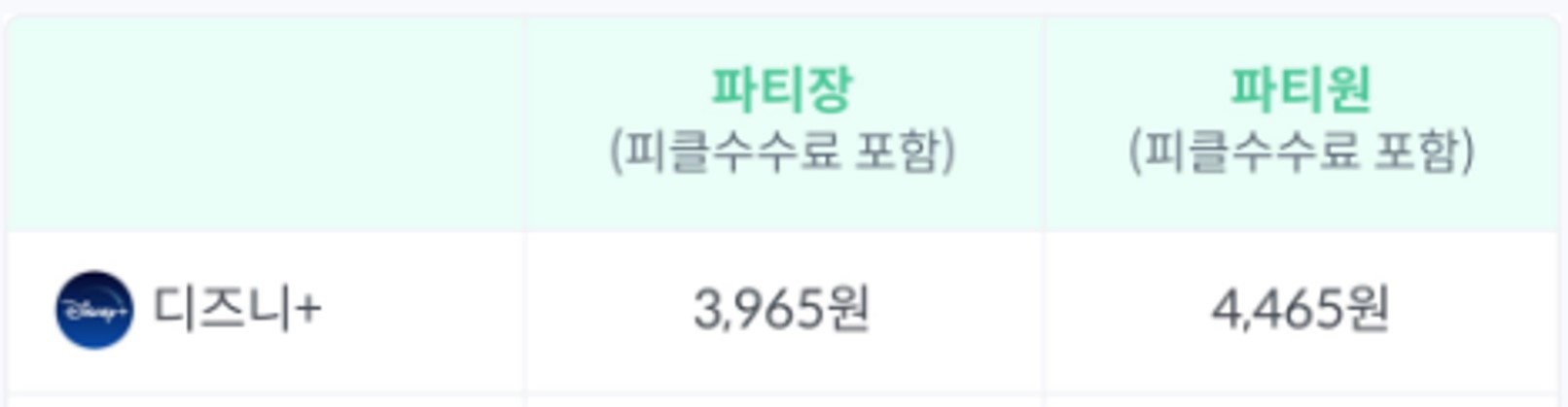 피클플러스는 파티장은 월 3,965원, 파티원은 월 4,465원입니다.(피클플러스 바로가기)