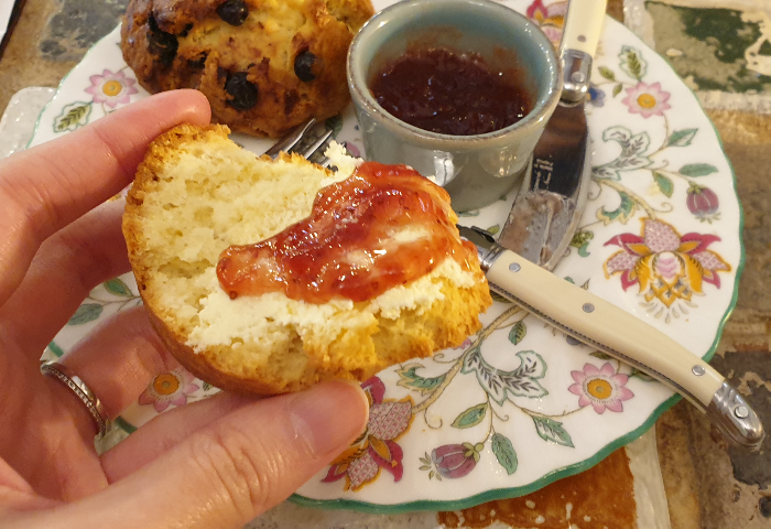 - 데본식 : 스콘에 클로티드 크림을 먼저 바른 후 그 위에 잼을 얹는 방식