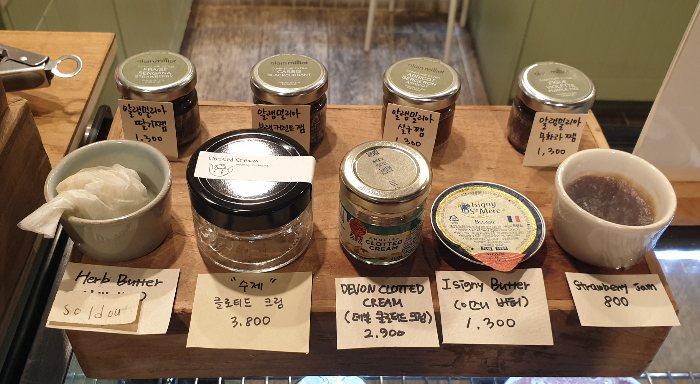 버터나 클로티드 크림, 잼 등은 별도로 구매할 수 있습니다. 클로티드 크림 가격은 수제(3,800원), 수입품(2,900원)에 따라서 달랐습니다.