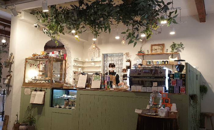 티푸드는 크림티 세트, 가든 티 세트, 샌드위치 등이 있습니다. 그리고 개별 스콘, 마들렌, 티그레, 쿠키, 케이크 등은 쇼케이스에서 골라서 주문할 수 있습니다.