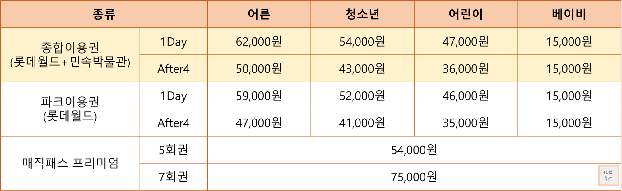 롯데월드 이용 요금