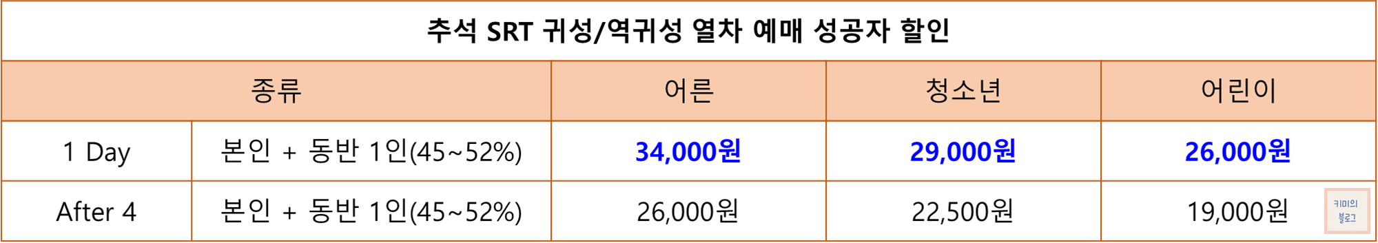 - 경로 : 만 65세 이상 = 어린이 요금과 동일